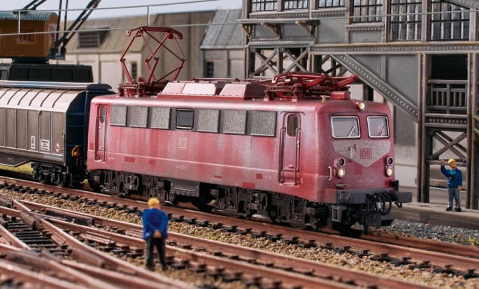 Beim Vorbild des Modells der BR 140 war offensichtlich nicht viel Zeit für die Fahrzeugpflege eingeplant. Das exklusive mhi-Modell der 140 024-1 der DB AG wird mit stark ausgeblichenem Lack und Betriebsverschmutzungen nachgebildet. Das digitale Modell besitzt neben den Soundfunktionen auch unterschiedlich Schaltbare Lichtbilder und eine Führerstandsbeleuchtung.
